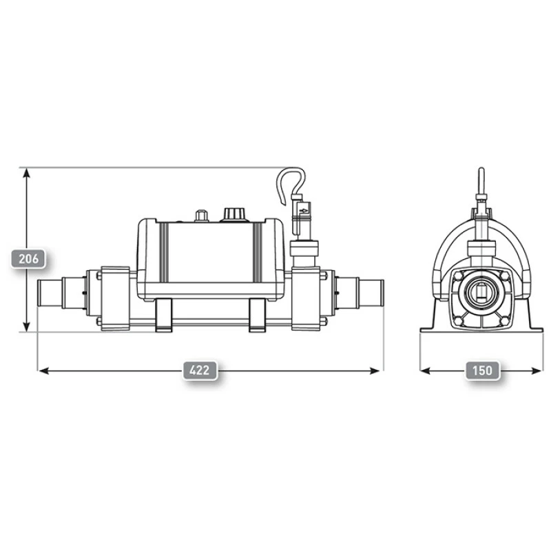 Un calentador de gran versatilidad. Puede instalarse en el suelo o elevado sobre un muro. Incluye los adaptadores para facilitar las conexiones con las diferentes tuberías comunes en las piscinas elevadas. Por otro lado sus conectores de entrada y salida pueden conectarse con tuberías.