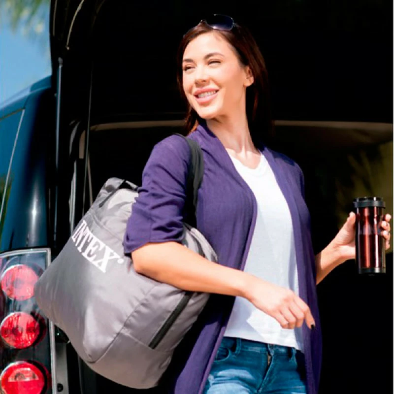 La cama hinchable está pensado para ser utilizado por 2 personas aguantando un peso máximo de 136Kg, con una altura muy cómoda para facilitar el acceso. Tiene un pliegue compacto para poder guardarlo en la bolsa d transporte.