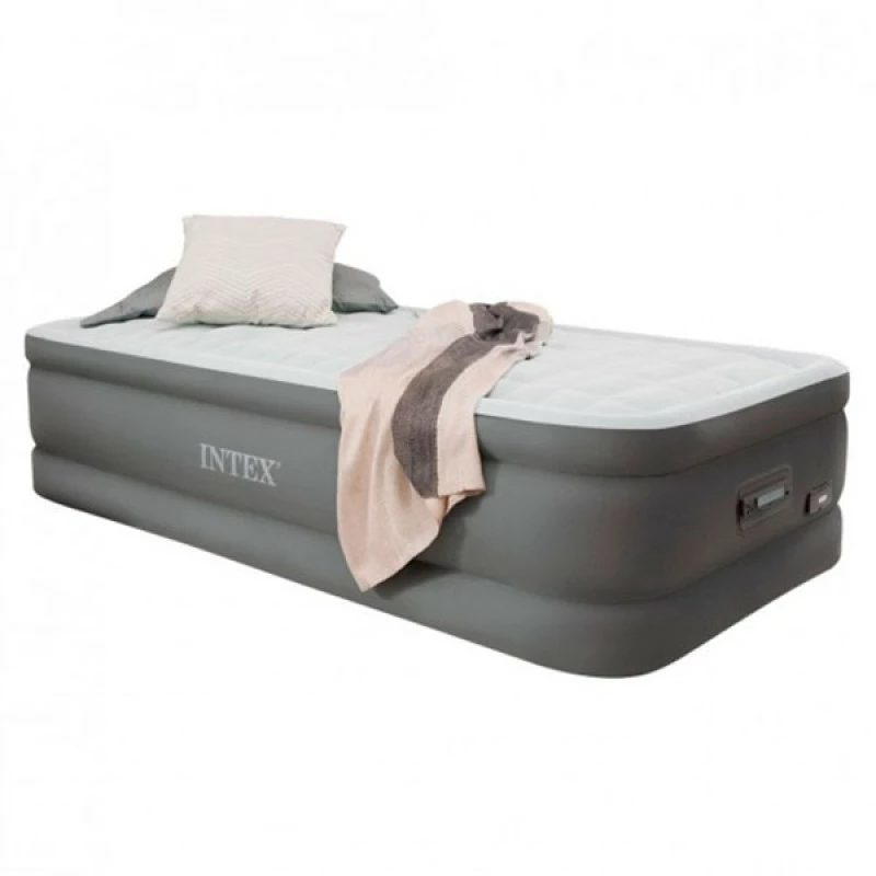 El colchón hinchable de Intex dispone de unas medidas de 99x191x46cm, fabricado tanto las paredes exteriores y su base de PVC laminado de dos capas para retener el aire y proporcionar una superficie muy resistente a pinchazos.
