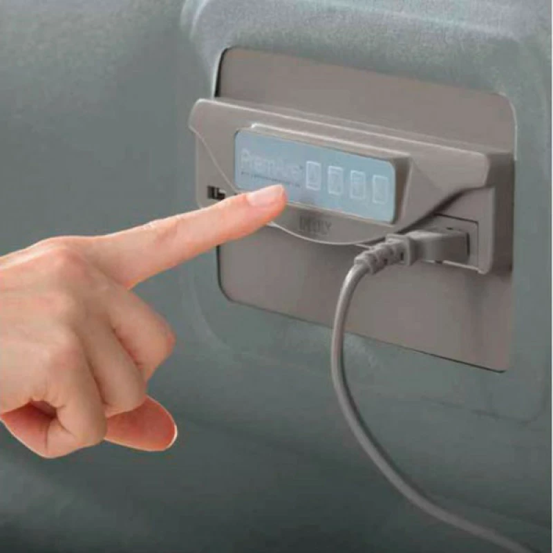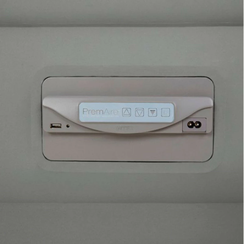 El Premaire Fiber-Tech incorpora un panel de control eléctrico LED con 4 opciones, botón de rigidez, interruptor inflado/desinflado, luz LED nocturna y un puerto de USB para poder cargar el móvil.
