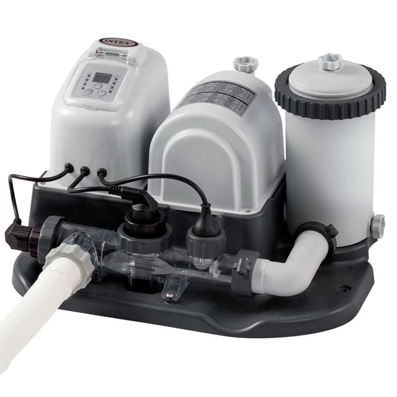 El combo depuradora de cartucho de la marca Intex combina la cloración salina con la filtración por cartucho.