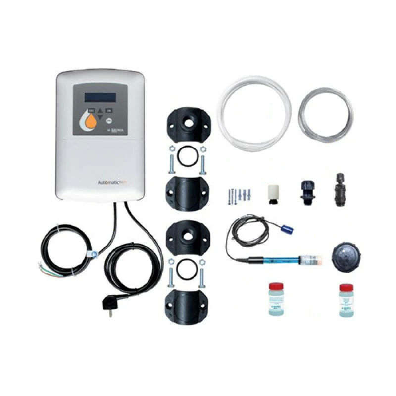 | Automatic Cl/pH | 7,2-7,4 | 0,6-1,0 mg/l | 80-120 rpm | pH-Minus (ácido) // pH-Plus (básico) Chloriliquide | Proporcional // adaptativo | 0,0 -10 | +/- 0,1 | 0-999 mV | 1,5 bar | 1,5 l/h |