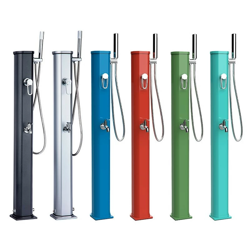 El uso constante de una ducha solar permite ahorrar energía en casa y evitar costes innecesarios para ducharnos en otros momentos cuando podemos aprovechar este tipo de energía gratis. Las columnas de aluminio actúan de conductor térmico al captar los rayos del sol. El agua puede llegar a los 60 °C de temperatura pero gracias al monomando conseguimos la mezcla de agua fría y caliente.