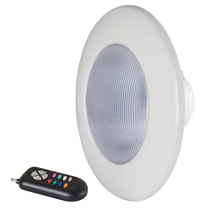 Foco led RGB con mando a distancia para piscinas enterradas.