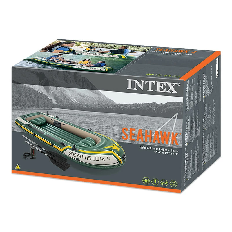 La barca inflable Seahawk 4 es una embarcación de recreo hinchable para 4 adultos que quieran pasar un día de playa o río espectacular. Con la comodidad que otorga el suelo y los asientos hinchables es ideal para personas que se inicien en la pesca (incluye dos agujeros para apoyar las cañas).