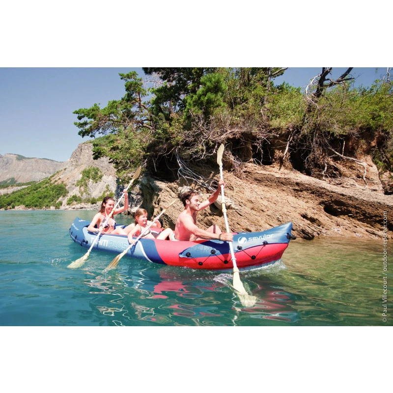 La gran novedad a diferencia de otros modelos de Sevylor es su forma para guardarlo; simplemente con enrollarla tendrá suficiente y se convierte rápidamente en un mochila.