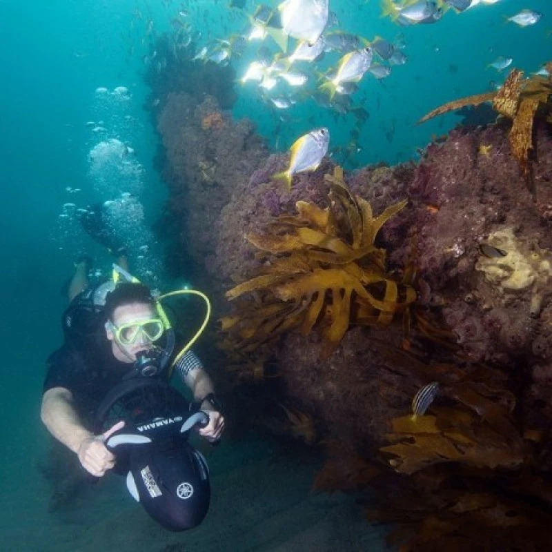 El Seascooter RDS280 es el complemento ideal para nuestras excursiones bajo el mar. Es compacto y ligero. Lo que hace que podamos nadar con él e incluso pasear sin que nos estorbe. Y por supuesto disfrutar del fondo marino sin limitaciones, y lo más importante, sin gastar tanta energía.