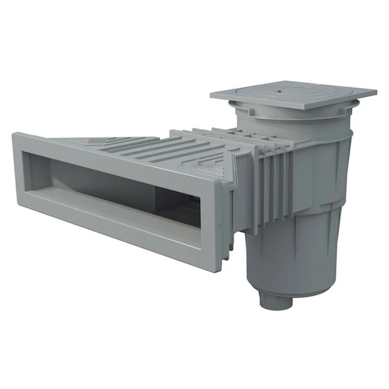 La entrada del agua es de 495×80 mm y tiene un caudal recomendado de 7,5 m3/h. Para sacar el máximo rendimiento a este tipo de equipos, es recomendable instalar un skimmer cada 25 m2 de superfície.