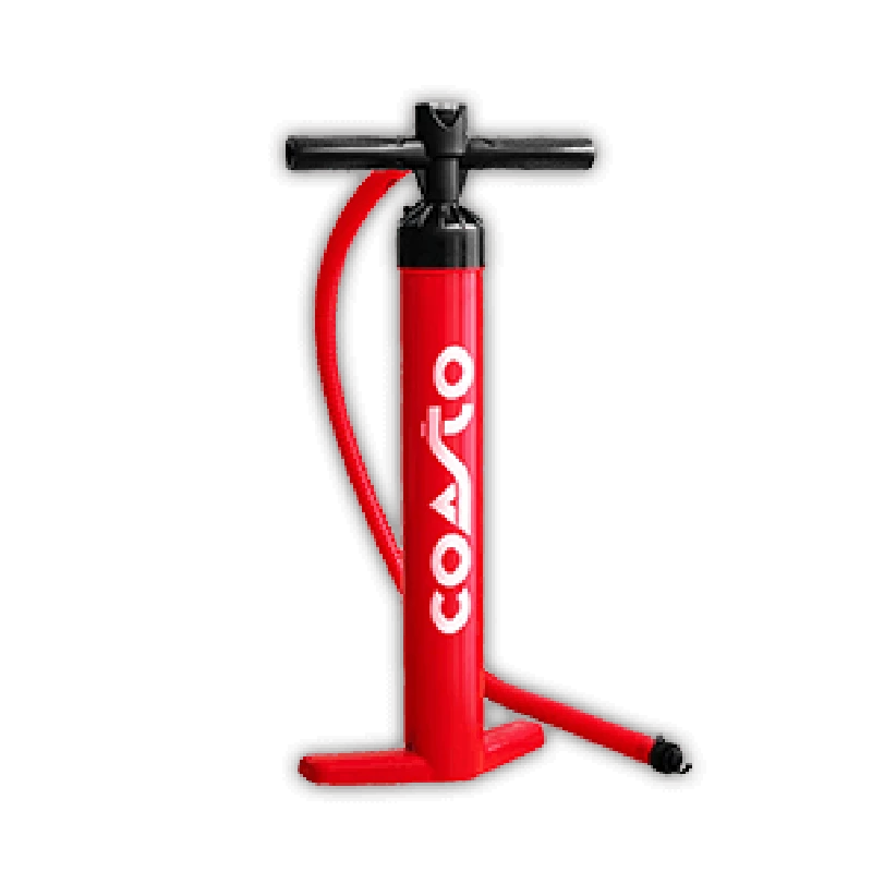· Bomba de alta presión de doble efecto: Consiste en una bomba sup. Debido a su mango ergonómico, puede inflar tablas de manera muy simple y efectiva. Es tan simple como poner un manómetro en la bomba, para controlar la presión en la palanca y Psi durante el inflado.