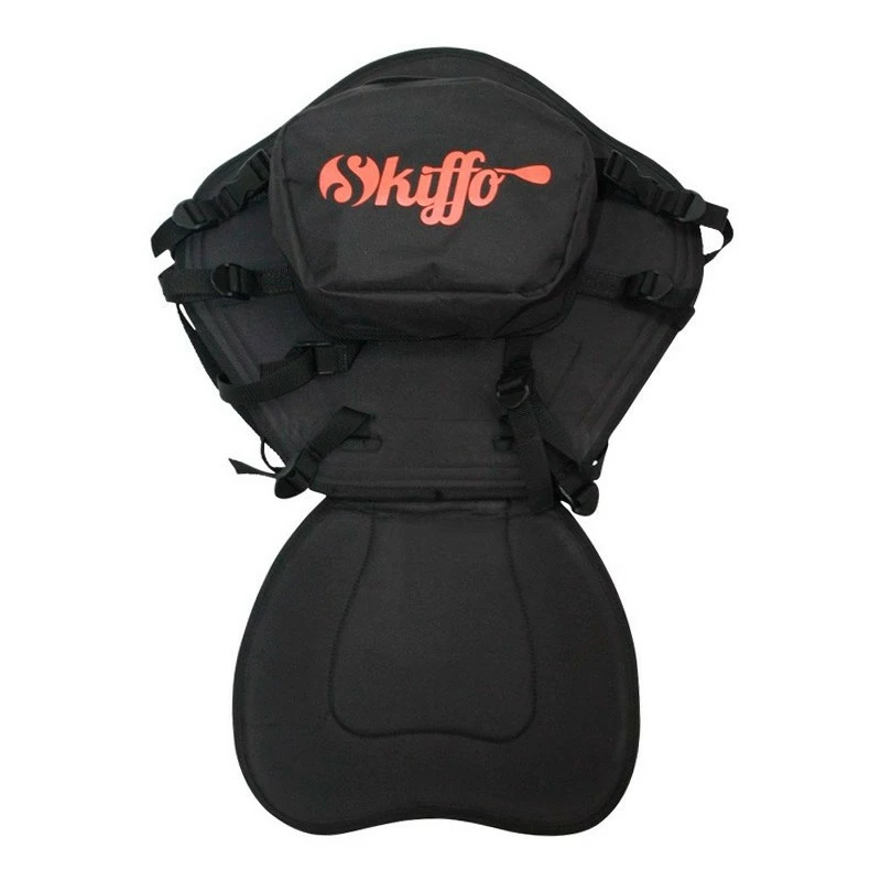 El modelo de asiento es confortable, con un acabado Premium de calidad acolchado que además de cómodo es resistente. Ideal para estar mucho más cómodo en las tablas cuando hagamos nuestros viajes y travesías. Tiene partes anti deslizantes e incorpora 4 pequeños mosquetones para facilitar la colocación en los ganchos de serie de las tablas. El pack incluye bolsa de transporte para colocar nuestras cosas de forma segura, además de correas delanteras y traseras para una correcta fijación a la tabla SUP.